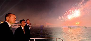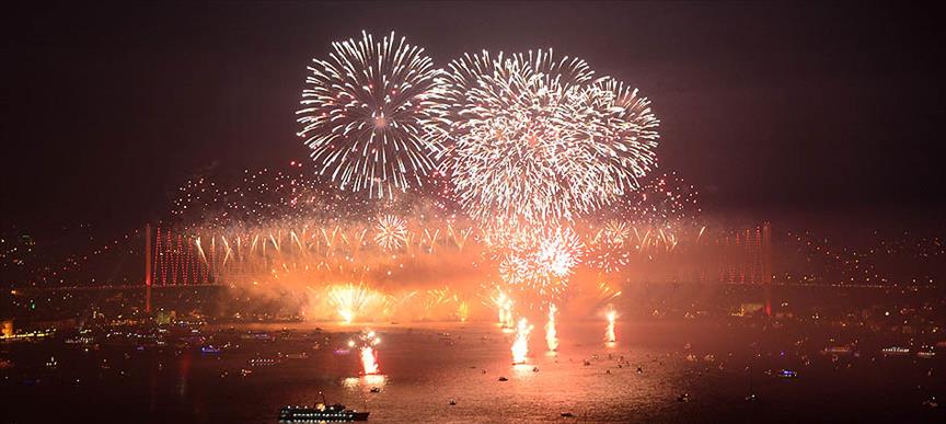 Boğaziçi Köprüsü ve Kız Kulesi arasındaki alanda yapılan gösteriler, saat 19.30'da ışık gösterisiyle başladı. Büyük havai fişek gösterisi ise Ortaköy Meydanı'ndan saat 19.45'te İstanbul Büyükşehir Belediye Başkanı Kadir Topbaş tarafından başlatıldı.