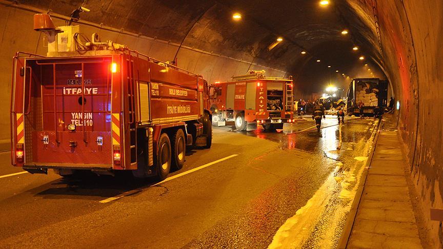 Çift yönlü ulaşıma kapanan tünelde yangının söndürülmesinin ardından İstanbul istikametinde ulaşım sağlanmaya başladı.