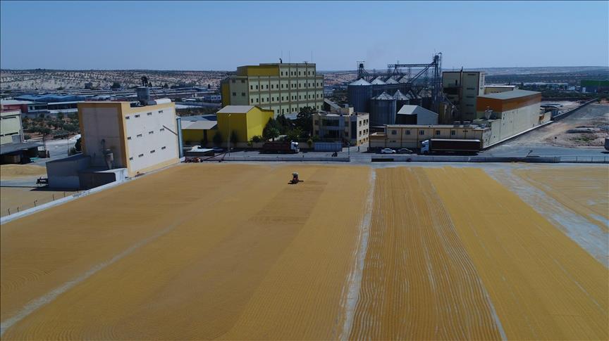 Gaziantep'te başta "Araban" ve "Barak" ovaları olmak üzere çevre il ve ilçelerde hasadı yapılan buğday, kamyonlarla kentteki bulgur işleme tesislerine getiriliyor.