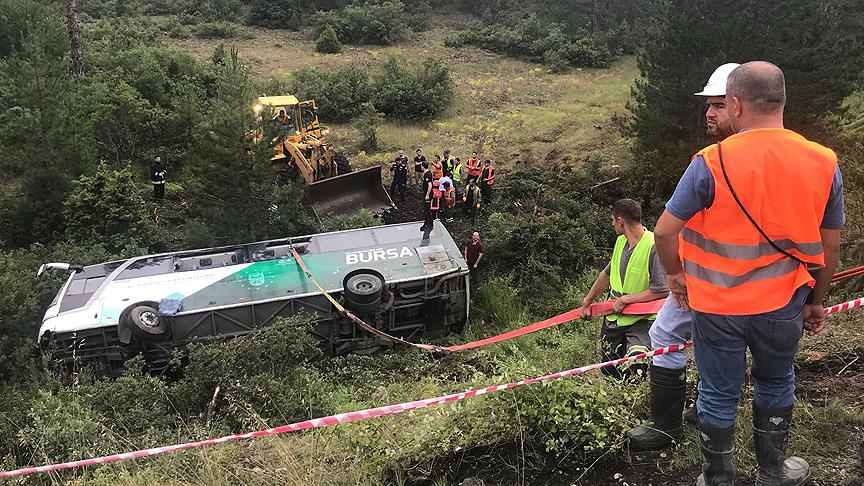 Alınan bilgiye göre, Bursa'dan Harmancık yönüne giden sürücüsü henüz belirlenemeyen, Bursa Büyükşehir Belediyesi tarafından Harmancık'ta bir cenazeye gitmek isteyen yolcuları taşıması için görevlendirilen 16 SVC 47 plakalı otobüs, bölgedeki bir maden ocağı yakınlarında şarampole devrildi.