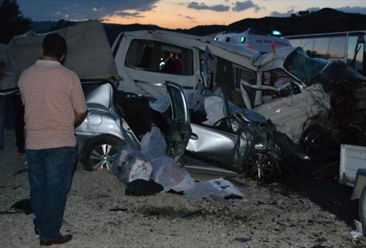 Kazada otomobil sürücüsü Hasan Kurban (41) ile araçta bulunan Cafer (6), Gülten Kas (39), Selver (31) ve İsmail Kurban (33) ile minibüste yolculuk eden Hazer Aşçı (8), Şaziye Yurdagül (16), Elif Nur Yurdagül (1) ve Satı Özdemir (47) hayatını kaybettiği bildirildi.