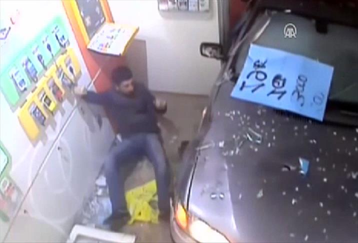 Bursa'da, seyir halindeyken sürücüsünün hakimiyetini kaybettiği otomobilin, kaldırımdaki yayaya çarparak onunla cep telefonu dükkanına girmesi, içerideki kişilerin yaşadığı korku ve panik anları, güvenlik kameralarına yansıdı.