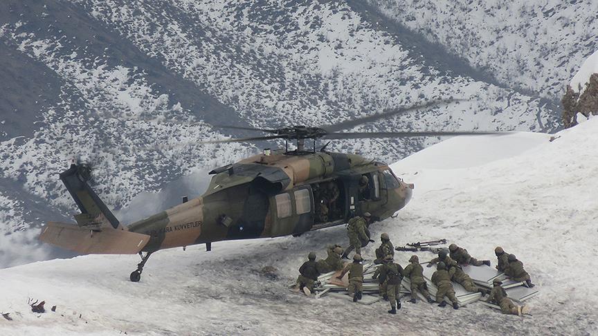 Teröristlerin etkisiz hale getirilmesi amacıyla operasyonlarını yaklaşık 4 aydır sürdüren güvenlik güçlerinin, eksi 30 dereceye varan soğukta ve kar kalınlığının 2 metreyi bulduğu arazide sürdürdüğü operasyonları yansıtan fotoğraflar dikkati çekti.