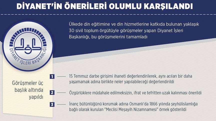 Yapılan görüşmeler neticesinde bahse konu yapıların, Diyanet İşleri Başkanlığının getirdiği önerileri olumlu karşıladığı öğrenildi.