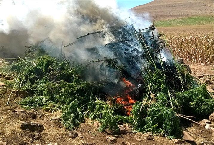 Narkotik köpeği CAKA'nın da katıldığı operasyonda, zanlıya ait mısır tarlasına ekilmiş 60 bin kök Hint keneviri, tarlanın yakınındaki mağaraya zulalanmış 400 kilogram esrar ele geçirildi.