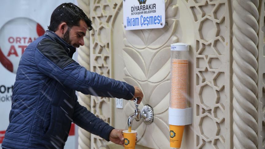 İçişleri Bakanlığınca Kanun Hükmünde Kararname (KHK) kapsamında görevlendirme yapılan Diyarbakır Büyükşehir Belediyesince üç noktaya kurulan "İkram Çeşmesi"nden vatandaşlar, ücretsiz çorba alma imkanı buluyor.