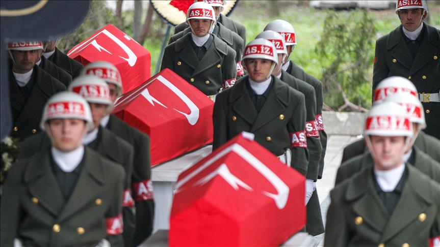 Kılınan cenaze namazının ardından pilotların Türk bayrağına sarılı tabutları, askeri merasim mangası tarafından bir süre omuzlarda taşındıktan sonra top aracına konuldu.