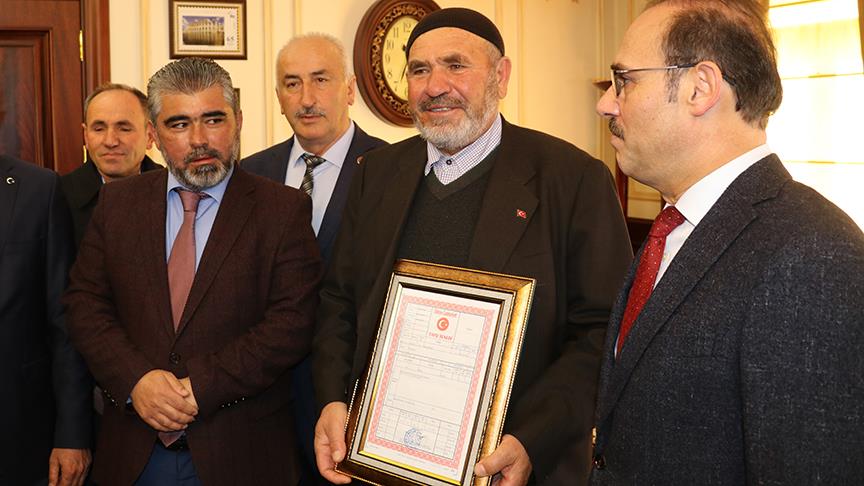 Ertek, Keçiören ilçesi Tepebaşı Mahallesi'nde, yaklaşık 250 bin lira değerinde olduğu belirtilen evinin tapusunu, makamında ziyaret ettiği Yozgat Valisi Kemal Yurtnaç'a teslim etti. Vali Yurtnaç da tapuyu gerekli işlemlerin yapılması için İl Jandarma Alay Komutanı Albay Bilgihan Yeşilyurt'a verdi.