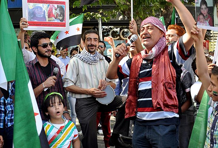 Çoğunluğunu kadın, çocuk ve öğrencilerin oluşturduğu grup adına açıklama yapan Suriye kökenli akademisyen Muhammed Bereket, ''Kendi halkını öldüren Beşşar Esed ve Suriye yönetimini protesto etmek için toplanmış bulunuyoruz'' dedi.