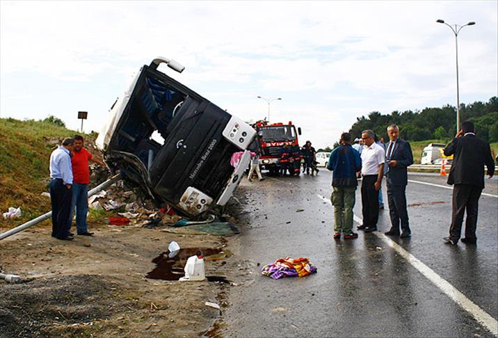 Kazada, otobüs sürücüsü ile araçta bulunan ve çoğunluğu Kemerburgaz'daki bir sitenin güvenlik görevlilerinden oluşan 22 kişi yaralandı.