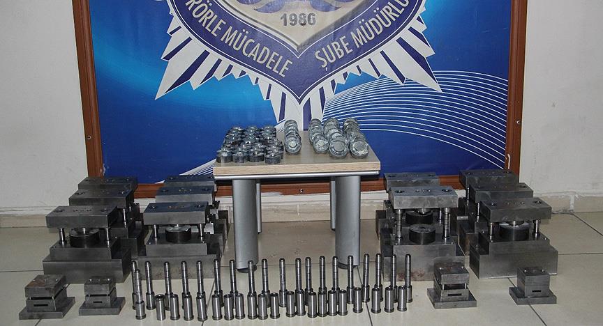 Binada ve şüphelilerin araçlarındaki aramalarda, terör örgütü tarafından kullanılan çok sayıda madeni para baskı kalıpları ve bunlara ait çeşitli aparatlar ele geçirildi.