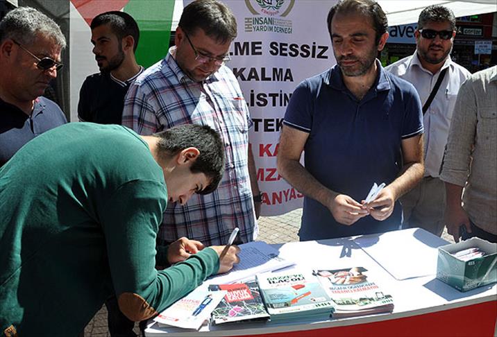 Eskişehir'de İnsan Hak ve Hürriyetleri (İHH) İnsani Yardım Vakfı ve Yunus Emre Uluslararası Öğrenci Derneği iş birliğiyle "Gazze için canlı kalkan ol" imza kampanyası başlatıldı.