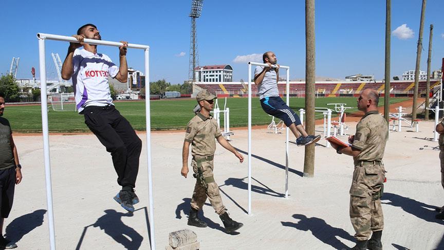 Van Atatürk Şehir Stadyumu'nda askeri görevlilerin gözetiminde yeterlilik sınavına alınan adaylar, 3 bin metre koşunun yanı sıra şınav ve mekik çekerek dayanıklılık testinden geçti.