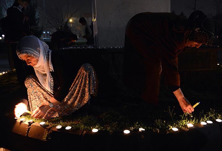 Burada, Halepçe katliamını anlatıldığı sinevizyon gösterisinin ardından grup, İnsan Hakları Anıtı'nın çevresinde mum yaktı.