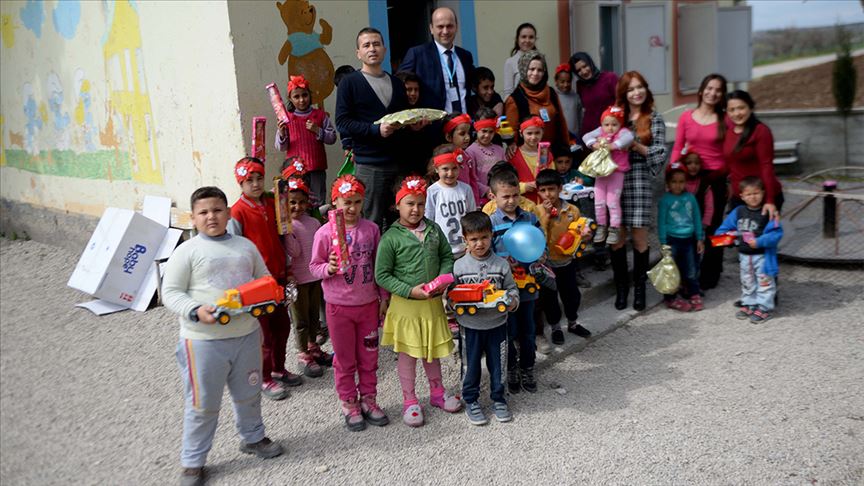 Kendi nüfusundan fazla Suriyeliye ev sahipliği yapan Kilis'te, Devlet Hastanesi tarafından hayata geçirilen "Bir Oyuncak Bir Tebessüm Projesi" kapsamında, köy okullarında eğitim gören Türk ve Suriyeli çocuklara oyuncak dağıtılıyor.