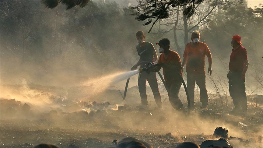 Öte yandan yangına şiddetli rüzgar nedeniyle havadan müdahale edilemiyor.