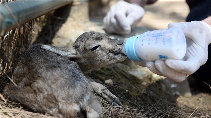Erkek ceylan yavrusuna "Hıdır", dişi yavruya ise "Ceren" ismini verdiklerini kaydeden Aydın, 2 günlük yavruların anne sütüne en yakın keçi sütüyle beslendiğini belirtti.