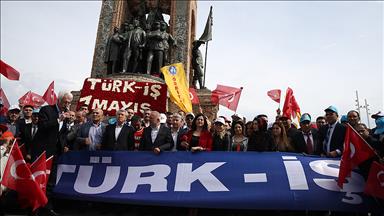 Gruptakiler buradan Taksim Cumhuriyet Anıtı'na geçti. Anıta kırmızı beyaz karanfillerle "1 Mayıs" yazılı çelengi bırakan katılımcılar, saygı duruşunda bulunduktan sonra İstiklal Marşı'nı söyledi.