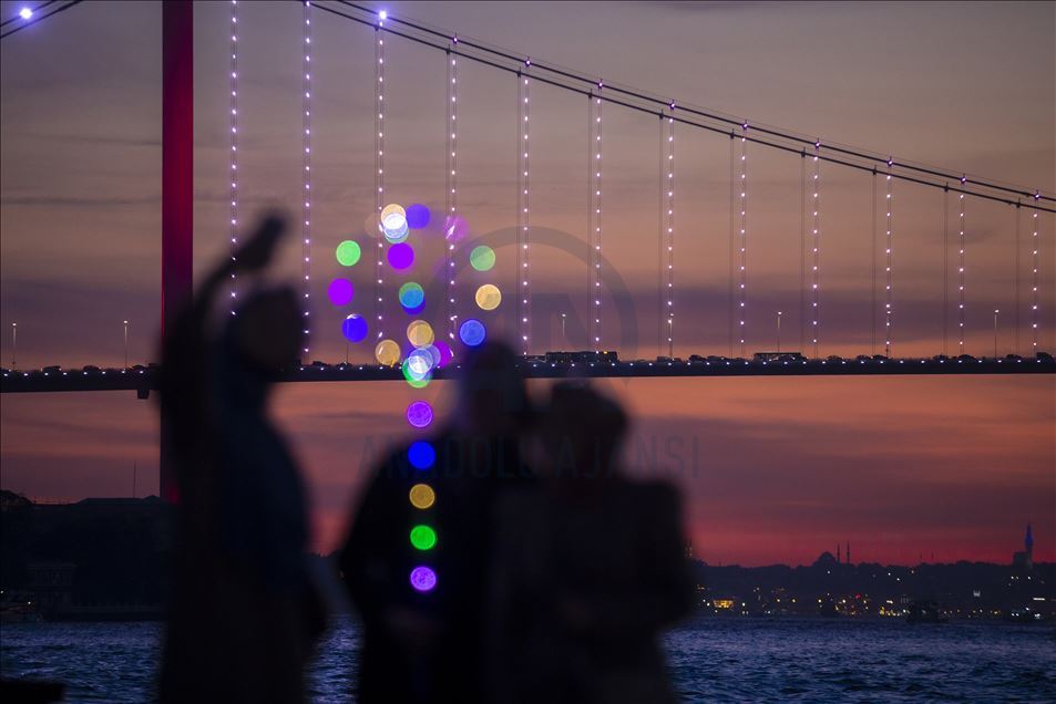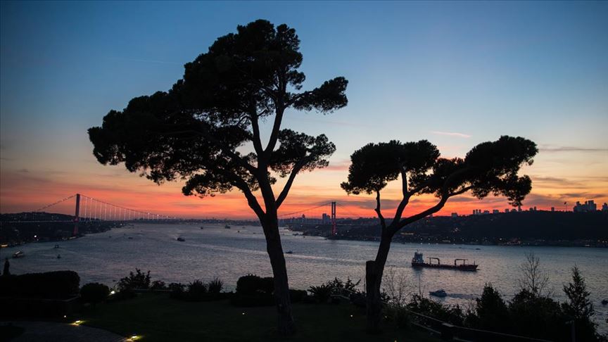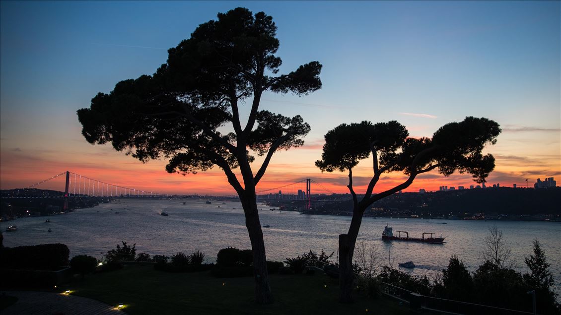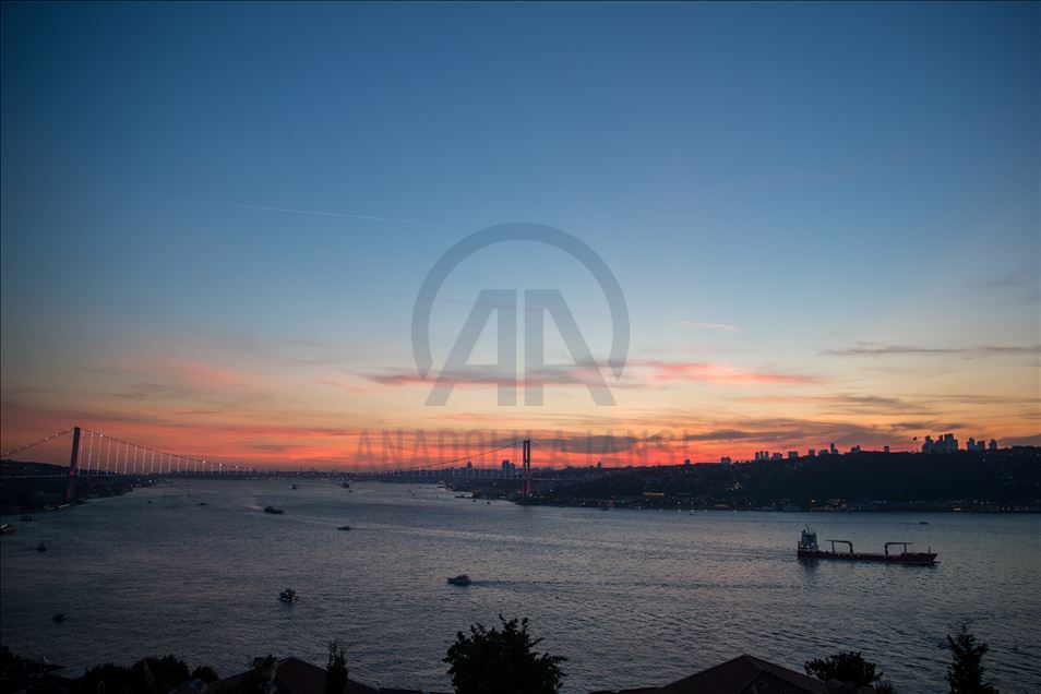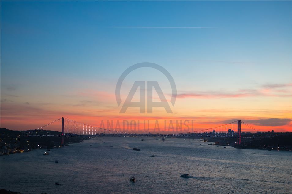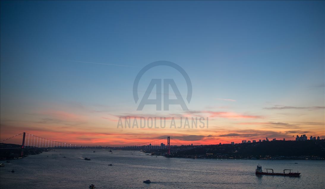 İstanbul'da gün batımında oluşan kızıllık ve 15 Temmuz Şehitler Köprüsü'nün silüeti güzel görüntü oluşturdu. ( Mustafa Kamacı - Anadolu Ajansı )