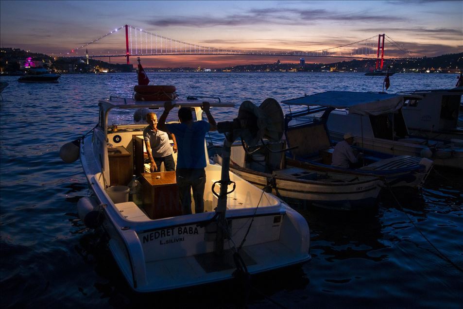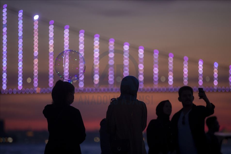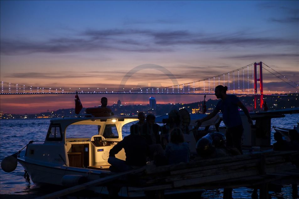 15 Temmuz Şehitler Köprüsü ve gün batımında oluşan kızıllık güzel görüntü oluşturdu. Çengelköy Sahili'ne gelen vatandaşlar manzarayı izledi
