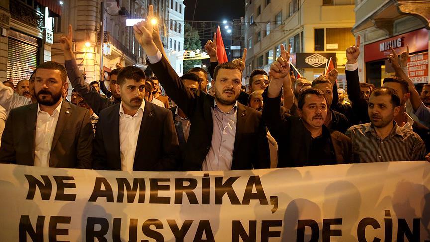 Grup adına açıklama yapan İstanbul Alperen Ocakları Başkanı Kürşat Mican, Rusya'nın Esed rejimine destek verdiğini belirterek, "Çin, Rusya ve İran, Esed rejimine destek çıkmaktadır, onun her daim arkasında olduklarını göstermektedirler. Orada Türkmen kardeşlerimize sahip çıkılmadığı için Türkmen Dağı zor durumda. Sadece 5 tane köyümüz kaldı. Artık strateji ne olursa olsun Allah rızası için oradaki din kardeşlerimize ve soydaşlarımıza sahip çıkalım." dedi.