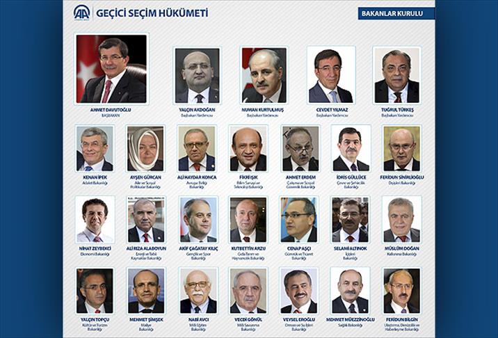 Başbakan Davutoğlu tarafından açıklanan seçim hükümetinde yer alan isimlerin siyasi tecrübeleri ve özgeçmişleri şu şekilde: