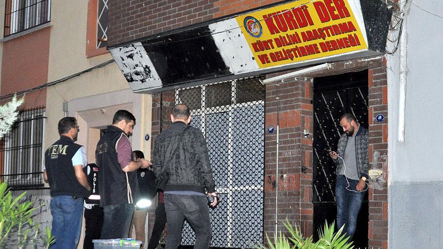 Konak'taki 2 dernekte de arama yapıldı. Aramalarda, çok sayıda yasaklanmış pankart, örgütsel doküman ve dijital malzemeye el konuldu.