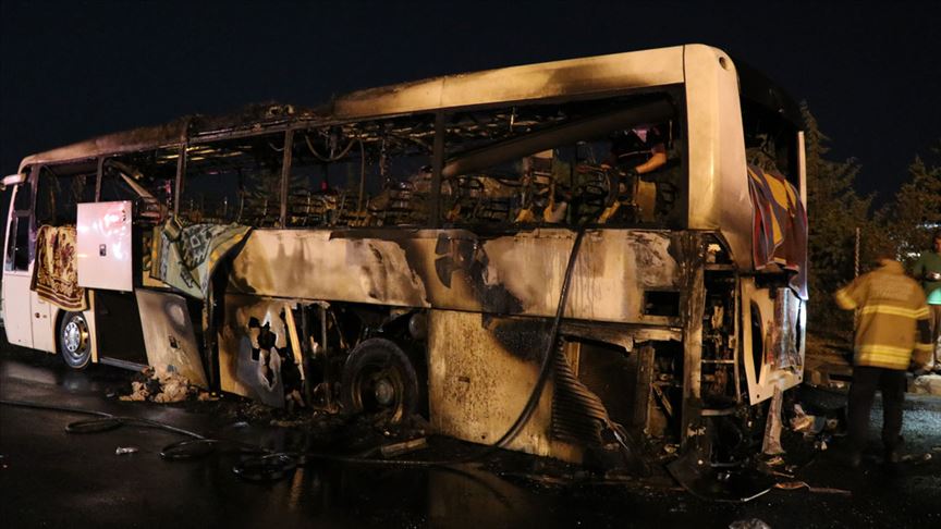 Sürücüsünün yol kenarına yanaştırdığı otobüsteki yolcular uyarı üzerine otobüsü tahliye etti. Otobüsteki yangın, olay yerine gelen itfaiye ekiplerince kısa sürede söndürüldü. Olayda yaralanan olmadı.