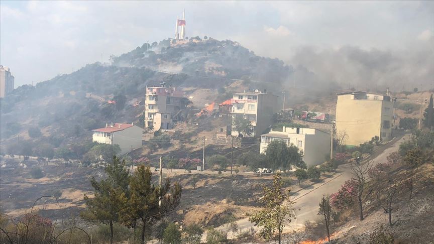 Fahrettin Altay Mahallesi'nde bulunan Mehmetçik Anıtı yakınındaki zeytinlik alanda henüz belirlenemeyen nedenle çıkan yangına, İzmir Orman Bölge Müdürlüğü bünyesindeki 4 arazöz ve bir helikopterle müdahale edildi.