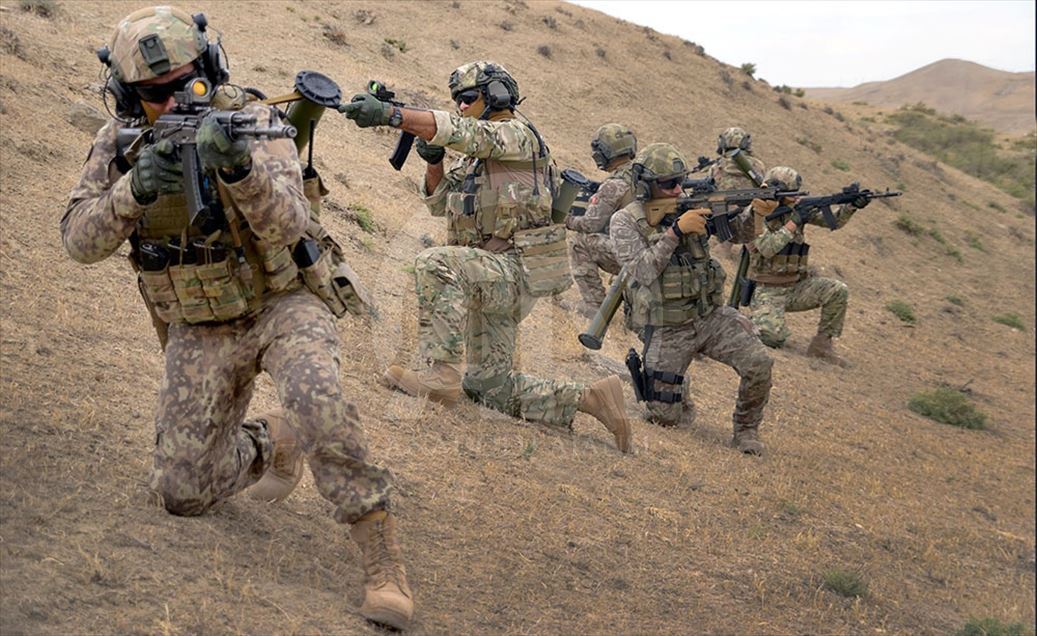 Türkiye, Azerbaycan ve Gürcistan özel kuvvetlerinin Azerbaycan'ın başkenti Bakü'de başlattığı ortak askeri tatbikat sürüyor. ( Azerbaycan Savunma Bakanlığı - Anadolu Ajansı )