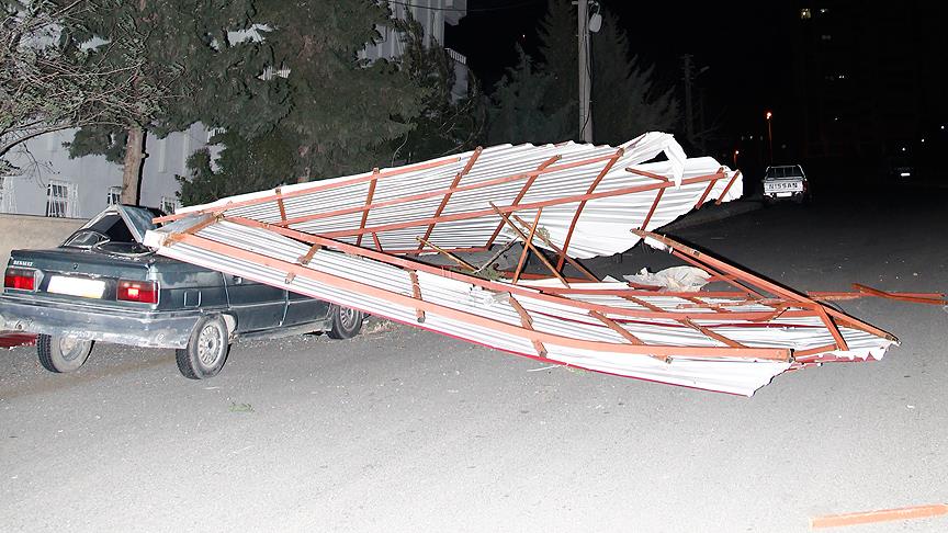 Rüzgarın şiddetiyle çevreye savrulan çatılar, farklı yerlerdeki üç otomobilde büyük çapta hasar oluşturdu.