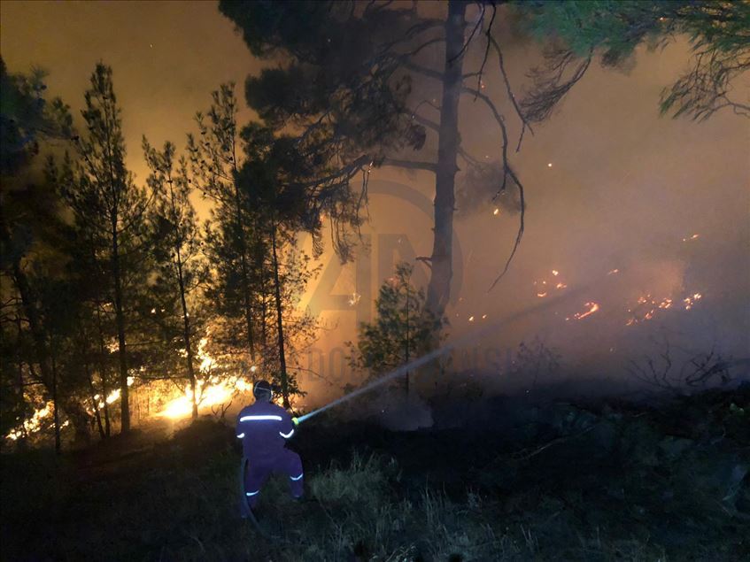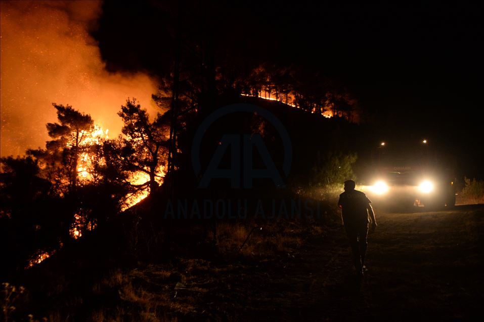 Kahramanmaraş'ta çıkan orman yangınlarına müdahale çalışmaları sürüyor. Onikişubat ilçesine bağlı Ayşe Pınarı Musalar mevkisinde akşam saatlerinde çıkan ve rüzgarın da etkisiyle kısa sürede büyüyen yangına Kahramanmaraş Orman Bölge Müdürlüğü ekipleri müdahale etti. ( İzzet Mazı - Anadolu Ajansı )
