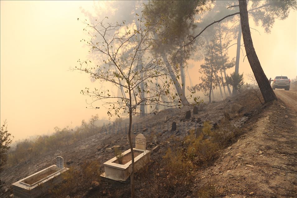 35 hektarlık alanın zarar gördüğü alandaki soğutma çalışmalarına Antalya ve Aksaray'dan gelen ekipler de destek vermeye başladı.