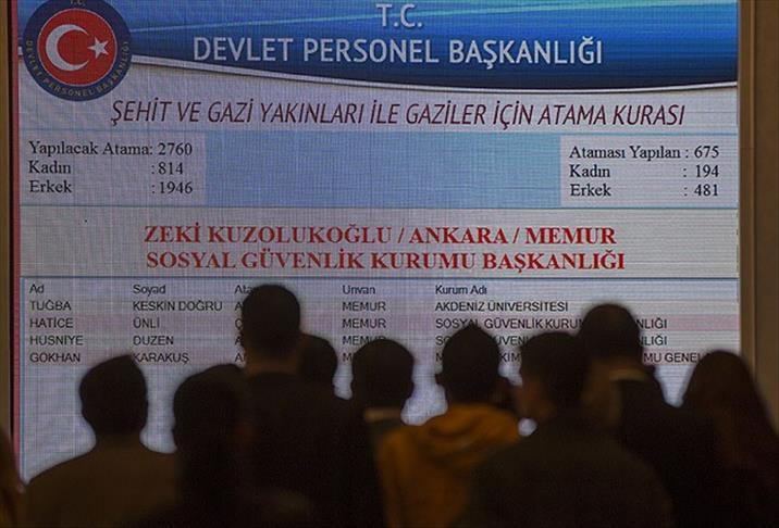 Devlet Personel Başkanı Mehmet Ali Kumbuzoğlu, AA muhabirine yaptığı açıklamada, daha önce engellileri ayrı, sosyal hizmet modellerinden yararlanan gençleri ayrı, şehit yakını, gazi, gazi yakını ve vazife malullerini ise ayrı atadıklarını belirterek, ilk defa üç grubu aynı anda kamu kurumlarına atayacaklarını söyledi.