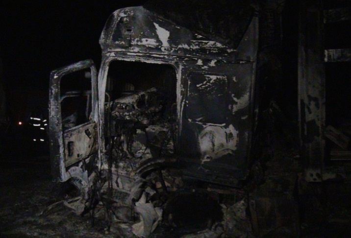 Karayolundaki farklı noktalarda terör örgütü üyelerince yakılan 8 tır, bir LPG tankeri, 2 pikap ve 2 otomobile itfaiye ekipleri güçlükle müdahale etti.