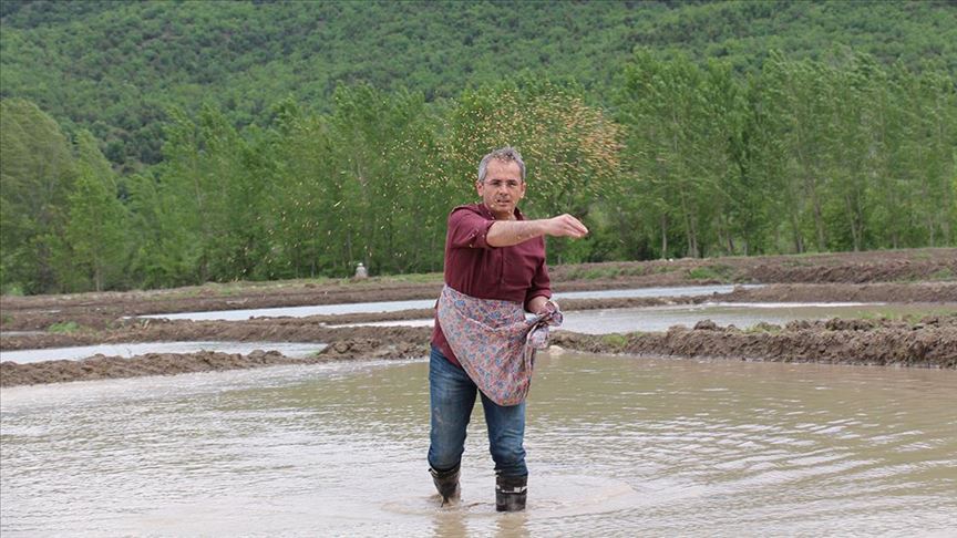 Çiftçilerle çizme giyip kürekle çeltik ekimine yardımcı olan Kaymakam Deniz Pişkin, AA muhabirine yaptığı açıklamada, Tosya'nın çeltik üretimi konusunda Türkiye'deki sayılı ilçelerden biri olduğuna işaret etti.