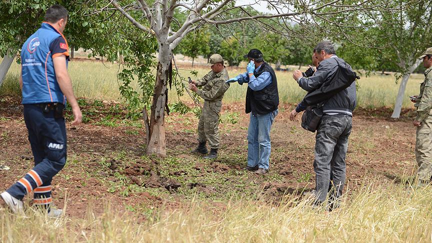 Öncüpınar Mahallesi'nde meyve bahçesine roket mermisi düştüğü ihbar üzerine bölgeye, AFAD, 112 acil servis ve polis ekipleri sevk edildi.