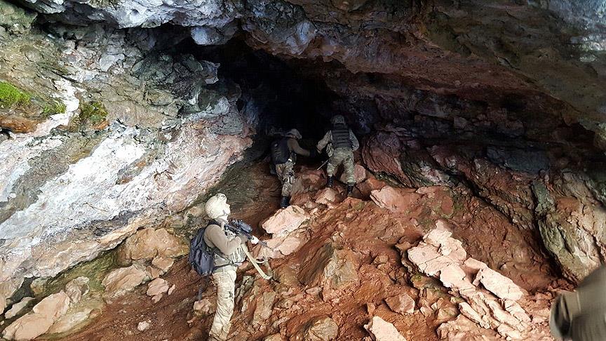 Bölgede teröristlerce kullanılan birçok mağarayı tespit eden güvenlik güçleri, buralarda arama yaptı.
