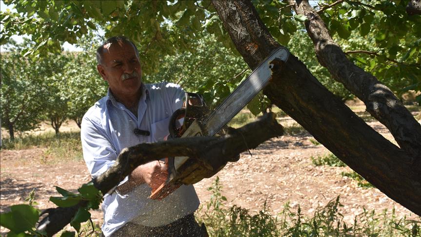 Eylül ayının sonlarında bahçelerdeki ağaçları hızar makinesi ve testere gibi aletlerle budamaya başlayan üreticiler, ağaçları yeniden yeşermeye başlayacakları ilkbahara hazırlıyor.