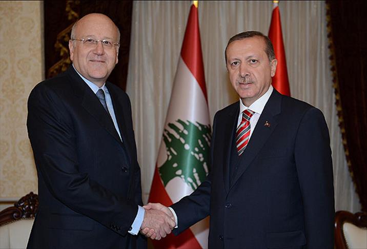 Tören kıtasını selamlayan Erdoğan ve Mikati, daha sonra protokol merdivenlerinde gazetecilere poz verdi.
