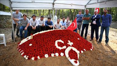 Tekbirlerin getirildiği ve terör örgütünü lanetleyen sloganların atıldığı törende, polis memurunun öz geçmişi okundu.