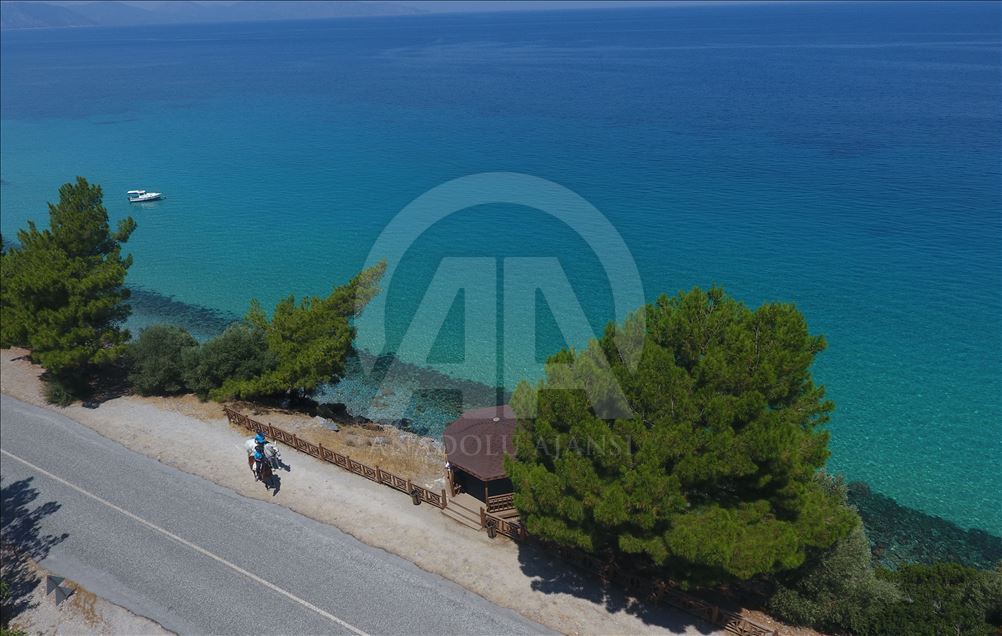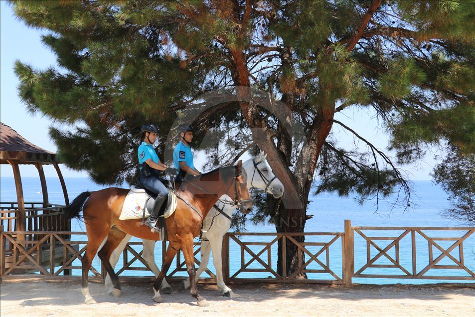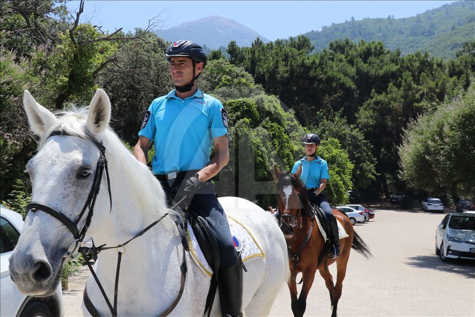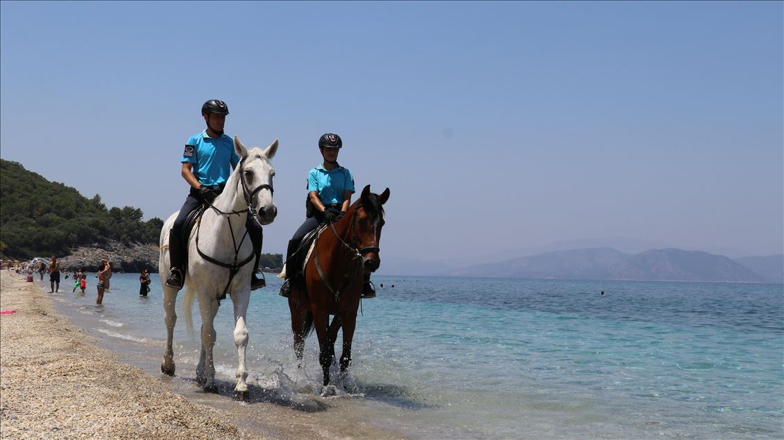 Biri kadın astsubay, diğeri de uzman çavuş olmak üzere 2 askerin biniciliğini yaptığı atlar, yerli ve yabancı turistlerin tercih ettiği Aydınlık, İçmeler, Kavaklıburun, Karasu koy ve sahillerinde belirli aralıklarla devriye geziyor.