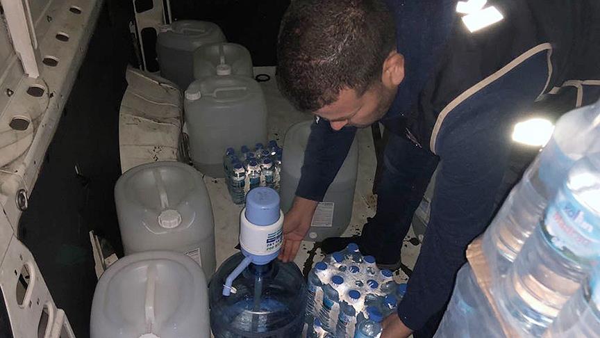 Polis ekiplerince minibüsteki aramada, yarım litrelik pet şişelerde toplam 22 litre sahte içki, 200 litre etil alkol, 500 mililitre anason, 150 litrelik tank ile yarım litrelik bin 800 pet şişe ele geçirildi. Malzemeler ve minibüse el konuldu.