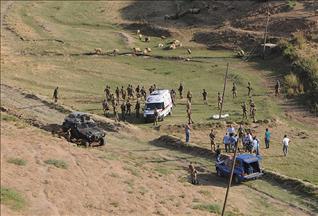 Arazinin sarp ve kayalık olması nedeniyle yangın güçlükle kontrol altına alınırken, soğutma çalışmaları başladı.