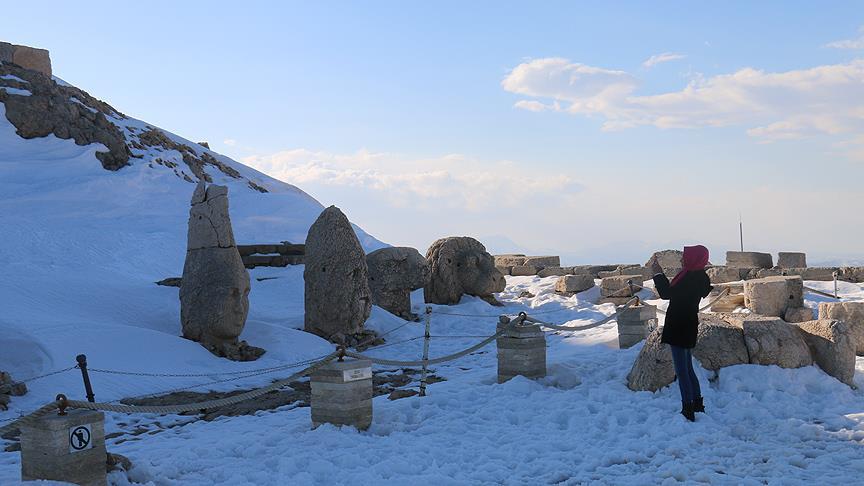 Adıyaman'ın Kahta ilçesi sınırlarındaki, Kommagene Kralı Antiokus'un mezarının da bulunduğu, dünyanın en yüksek açık hava müzesi olarak nitelendirilen Nemrut Dağı, karla kaplı yollar açılınca ziyaretçilerini yeniden ağırlamaya başladı.