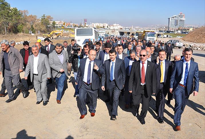 Anadolu Bulvarı'nı Konya Yolu'na bağlayacak ve ODTÜ arazisinden geçecek yolun yapımında çalışan işçilere başkentteki taksi, dolmuş özel halk otobüsü şoförleri destek verdi.