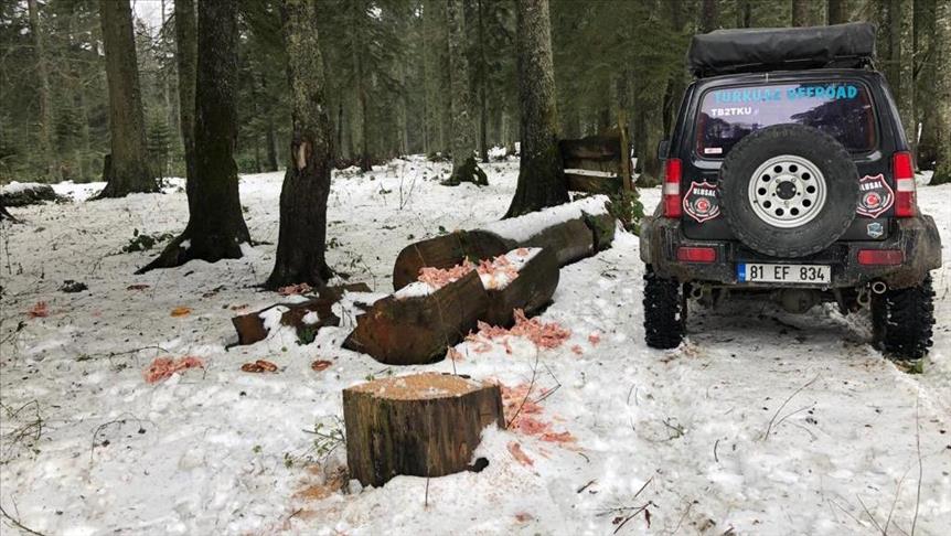Düzce Turkuaz Offroad Kulübü Başkanı Yakup Şahin, "Bugünkü etkinliğimizde yaban hayatta beslenmekte güçlük çeken hayvanları koruma adına yemleme çalışması yapıyoruz.