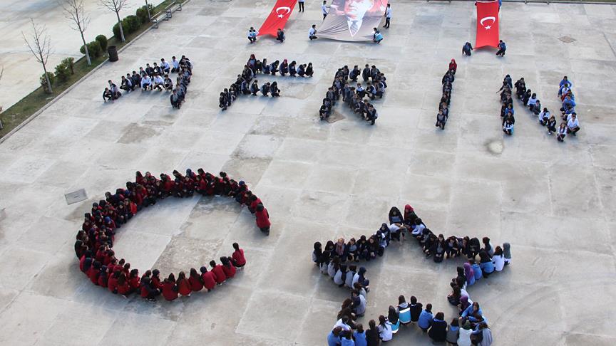 İlçedeki Şehit Besim Kazar ile Şehit Osman Ünal Mesleki ve Teknik Anadolu Liseleri'nde okuyan 280 öğrencinin katılımıyla hazırlanan koreografide, ay yıldız figürü ve Afrin yazısı oluşturuldu.