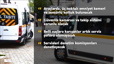 Okul servis araçlarında her öğrenci ve çocuk için üç nokta emniyet kemeri ve gerekli koruyucu tertibat ile her koltukta oturmaya duyarlı sensörlü sistem bulundurma, iç ve dış kamera sistemi ile en az 30 gün süreli kayıt yapabilen kayıt cihazı zorunluluğuna ilişkin verilen süre bir yıl uzatılarak 3 Eylül 2019 olarak belirlendi.