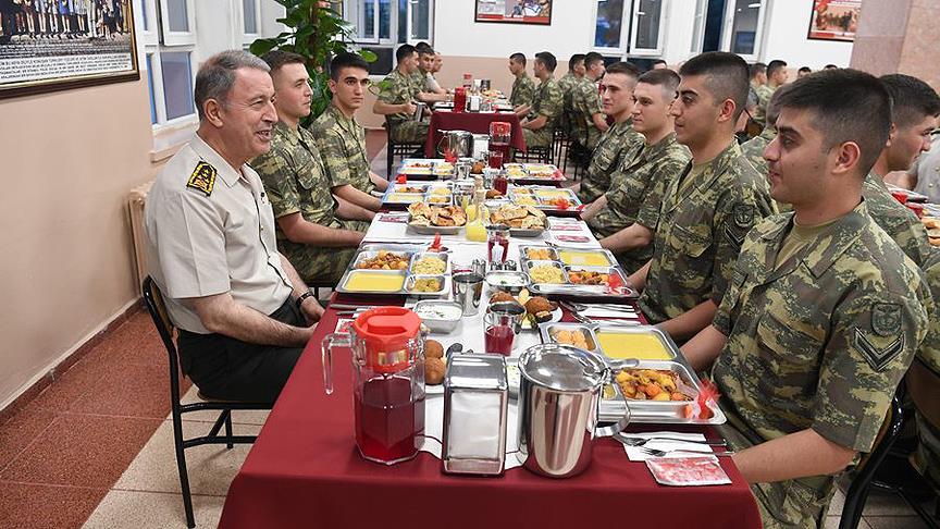 Genelkurmay Başkanı Orgeneral Hulusi Akar, Genelkurmay Başkanlığında vatani görevini yapan erbaş ve erlerle iftar yaptı.